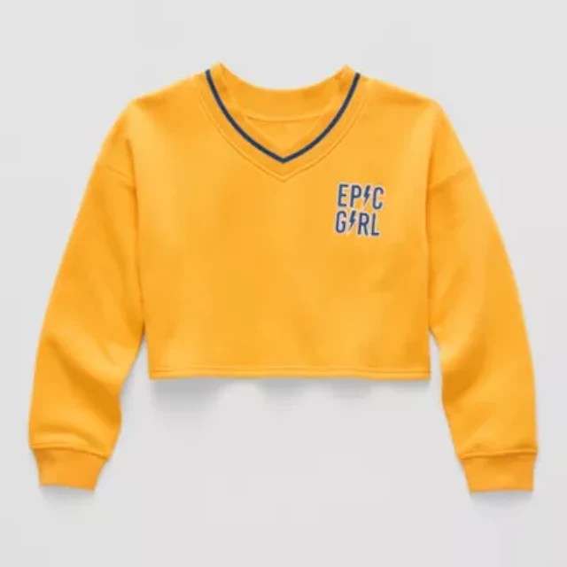 Xersion Little & Big Kid Girls V Neck Fleece Long Sleeve Sweatshirt