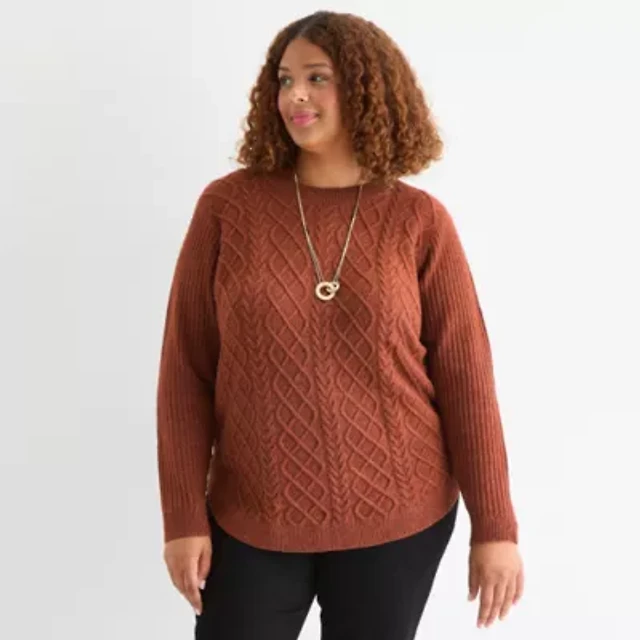 Liz Claiborne Plus Womens Crew Neck Embellished Long Sleeve Pullover Sweater