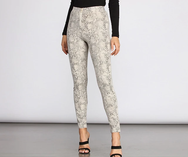 Faux Suede Snake Print Pants