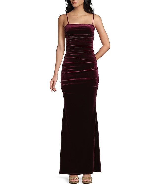 Velvet Sweetheart Tie Strap Ruched Mini Dress