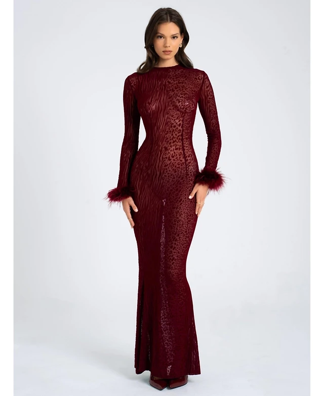 Miss Circle Women Waylynn Animal Print Burnout Velvet Detail Mesh Backless Maxi Dress