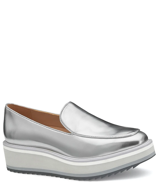Johnston & Murphy Women's Gracelyn Leather Venetian Platform Wedge Loafers