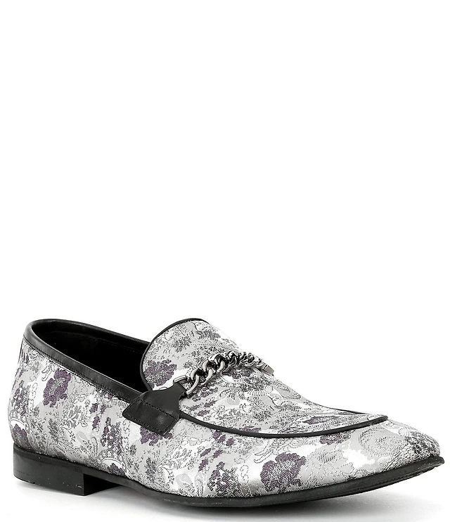 Section X Men's Saint Snake Embossed Leather Chain Hardware Venetian Dress Loafers