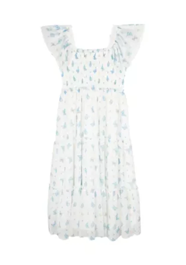 Mac Duggal Big Girls Floral Scoop Neck Ruffle Dress