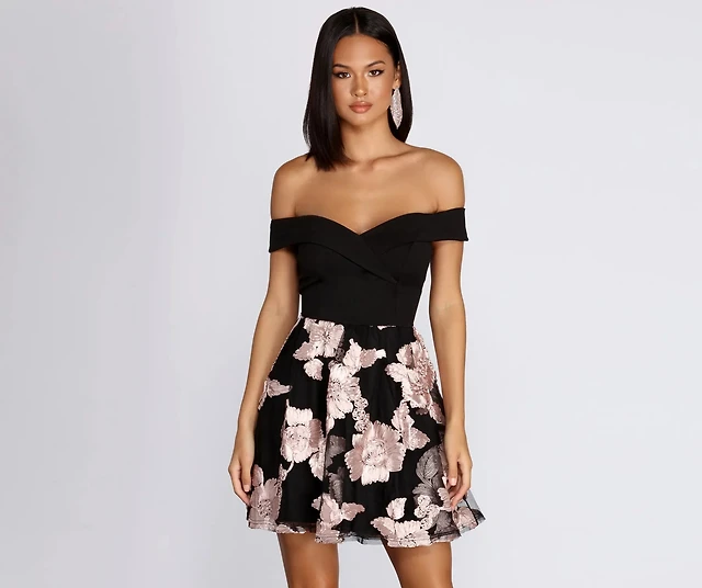 Dress the Population Savannah Jacquard Floral Print Tiered Tea Length Dress