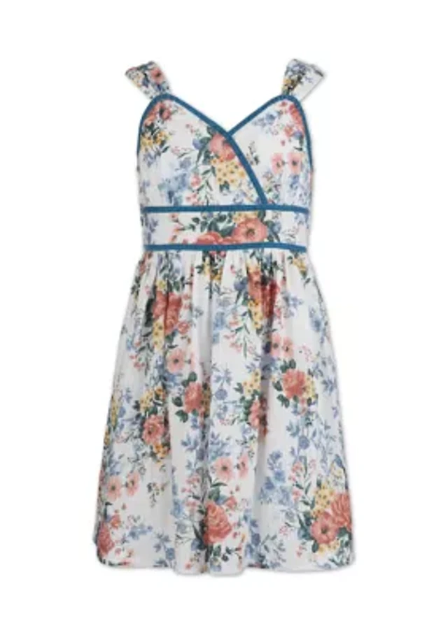 Mac Duggal Little Girls Floral High Neck Sleeveless Ruffled Dress