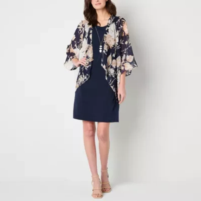 Liz Claiborne Womens Short Sleeve Midi Floral A-Line Dress