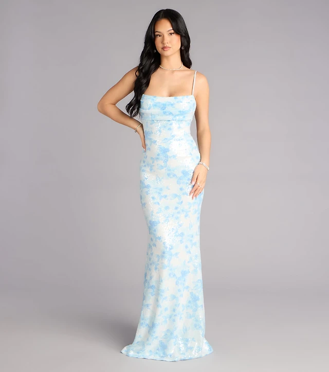 Dress the Population Nicole Floral Sequin Sheath Midi Dress