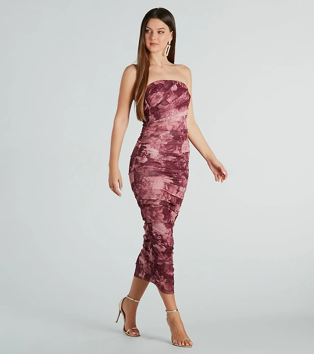 Easy Romance Strapless Floral Midi Dress