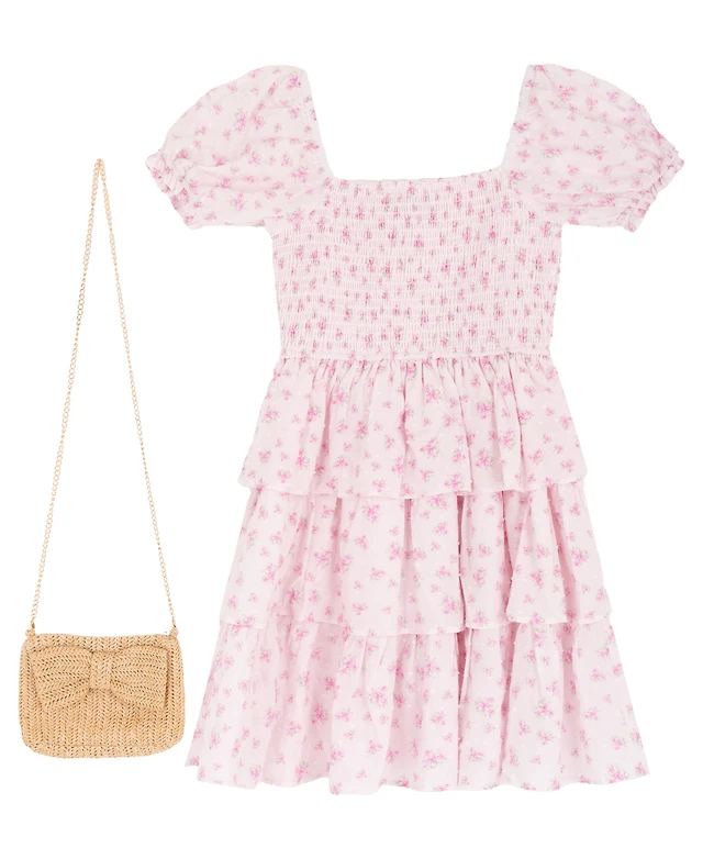 Rare Editions Girls' 2T-6X Smocked Tiered Floral Dress and Bag, 2-Piece Set