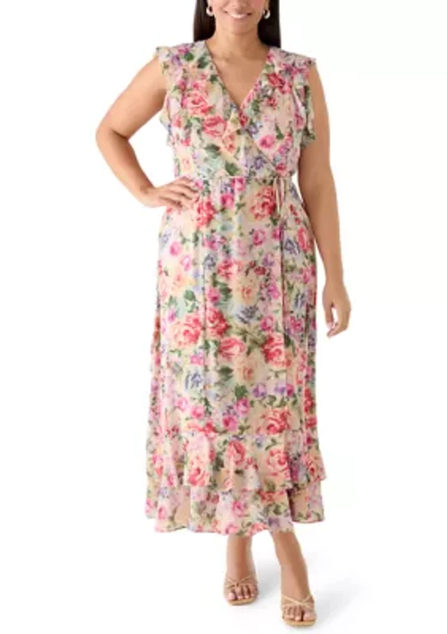 Plus Sleeveless Ruffle Floral Maxi Dress
