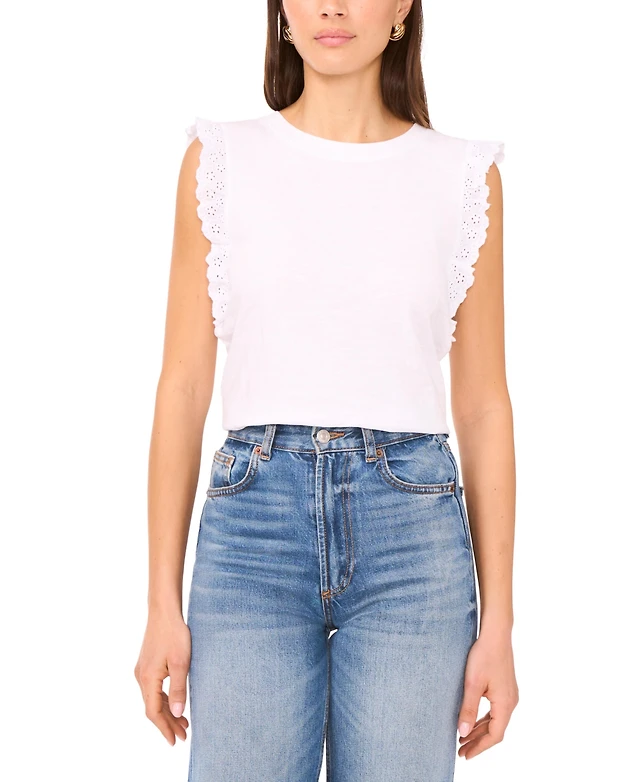 Vince Camuto Women's Cotton Eyelet-Lace Trim Tank Top