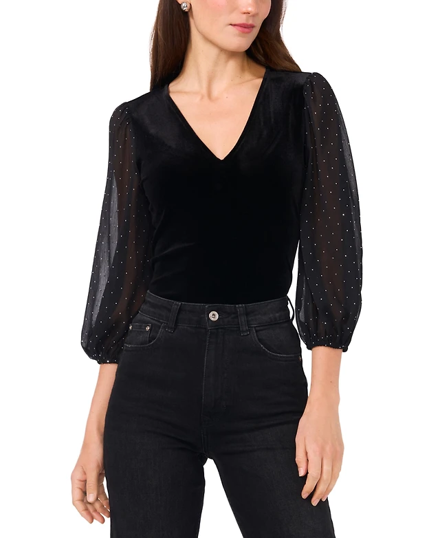 Vince Camuto Women's Sequined Dolman Sleeve V-Neck Blouse