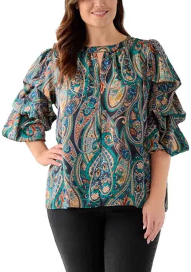 Vince Camuto Plus Size Printed Woven Long Sleeve Border Button Front Shirt