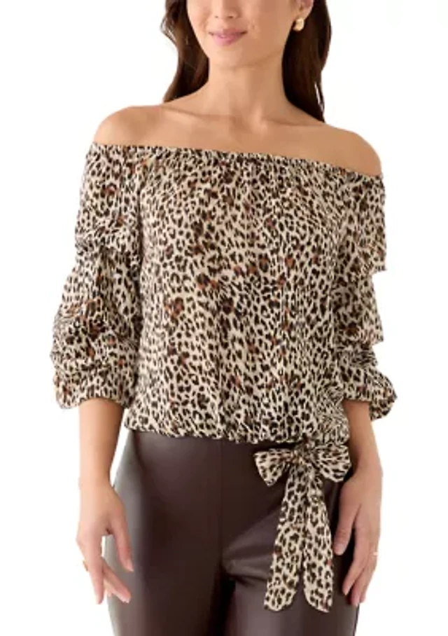 Vince Camuto Woven Printed Off-The-Shoulder Long Sleeve Button Front Blouse