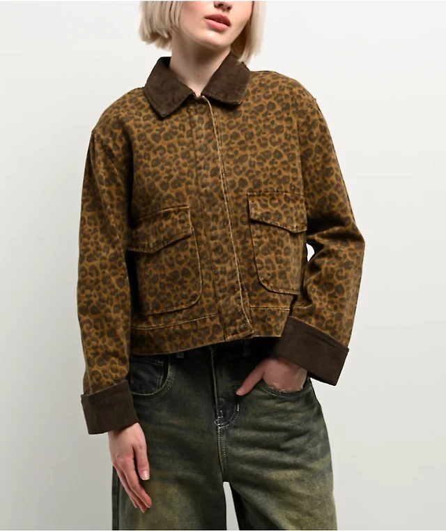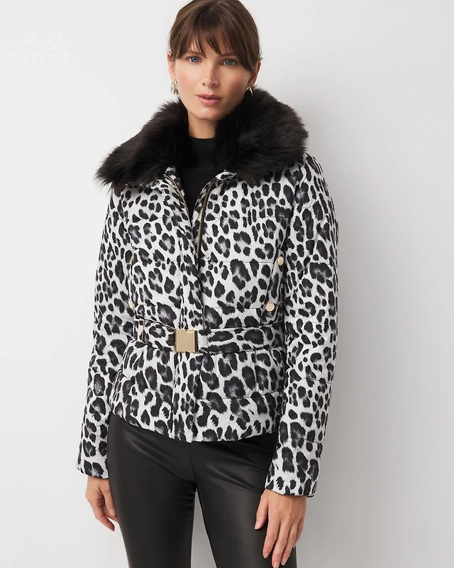 Faux Fur Collar Leopard Puffer Jacket
