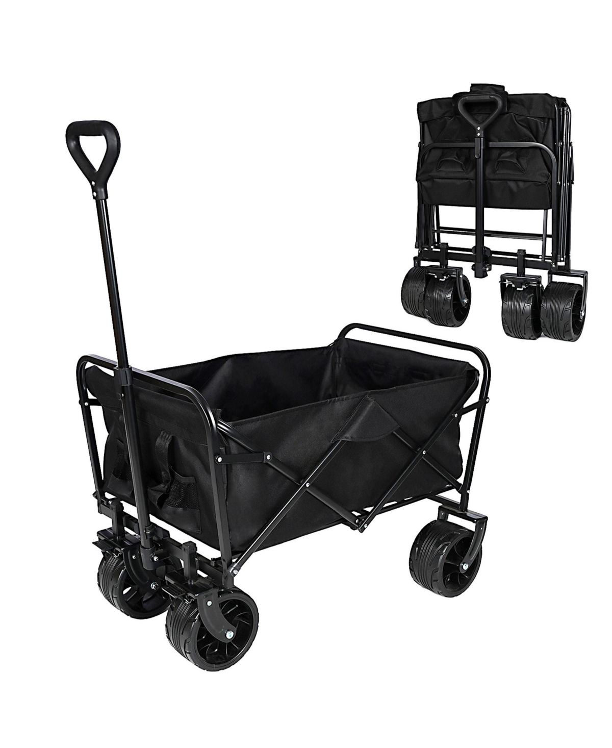 Sugift 3 Tiers Foldable Outdoor Cart on 2 Wheels with Phone Holder-Black