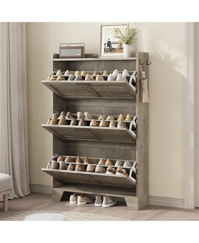gaomon Shoe Storage Cabinet with 2 Flip Drawers, Fluted Narrow Shoe Storage Cabinet Organizer with Legs