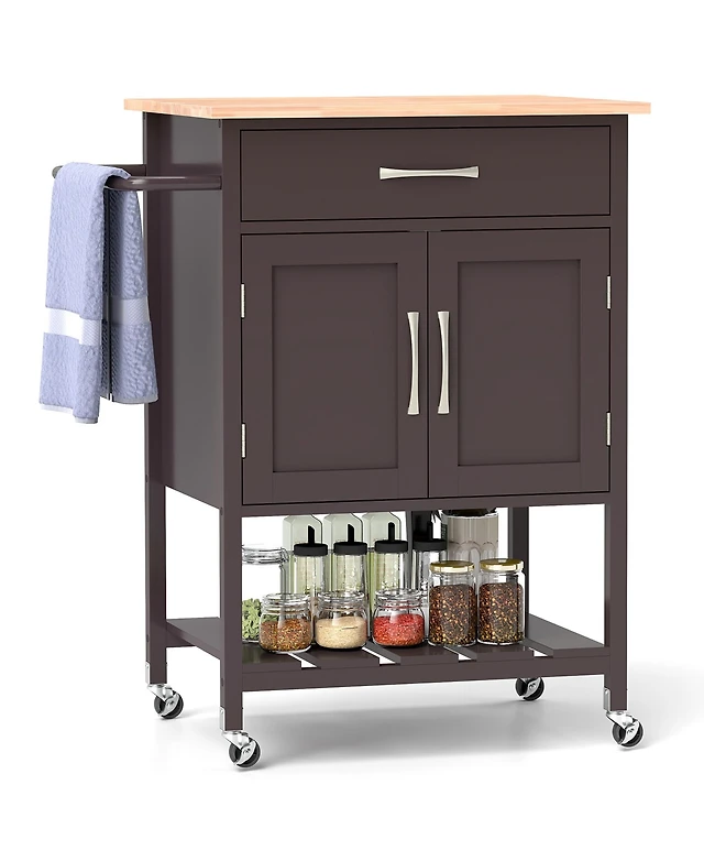 Volenca 60" Kitchen Island Cart with Wood Top, Drop Leaf, Drawers & Storage Racks.