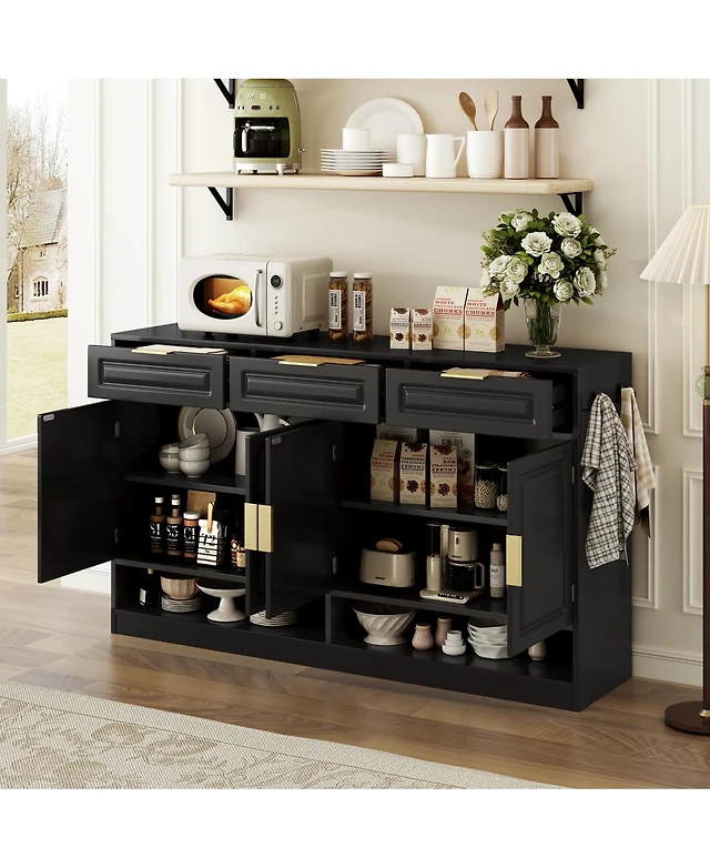 Farmhouse Buffet Cabinet with Barn Door - Black