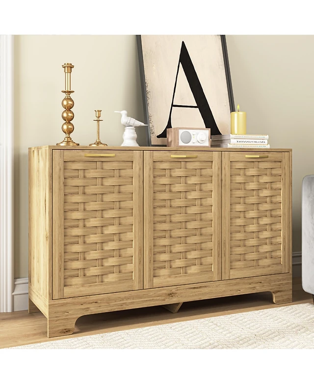 gaomon Sideboard Buffet Cabinet with 2 Rattan Doors & Shelves