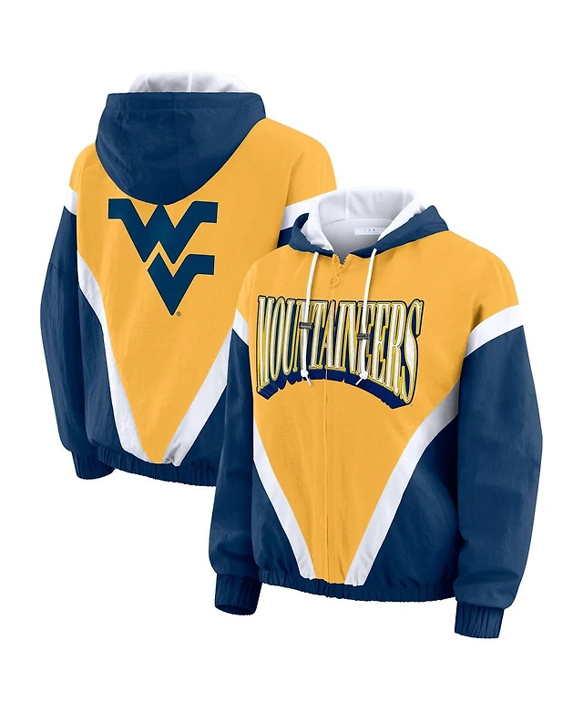 Wear by Erin Andrews Women'sNavy/Gold West Virginia Mountaineers Color Block Full-Zip Hoodie Windbreaker Jacket