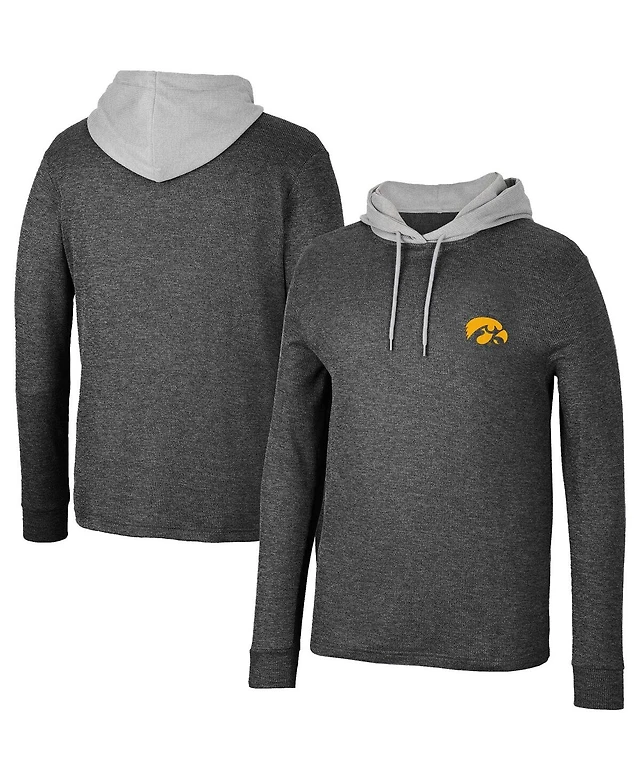 Men's Colosseum Charcoal Iowa Hawkeyes Dujour Ralgan Long Sleeve Henley Hoodie T-Shirt