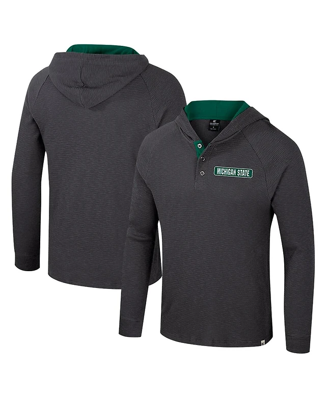Colosseum Men's Charcoal Michigan State Spartans DuJour Raglan Long Sleeve Henley Hoodie T-Shirt