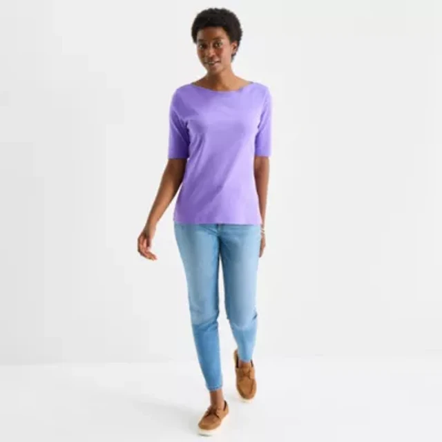 Alfred Dunner St Augustine Womens Crew Neck 3/4 Sleeve T-Shirt