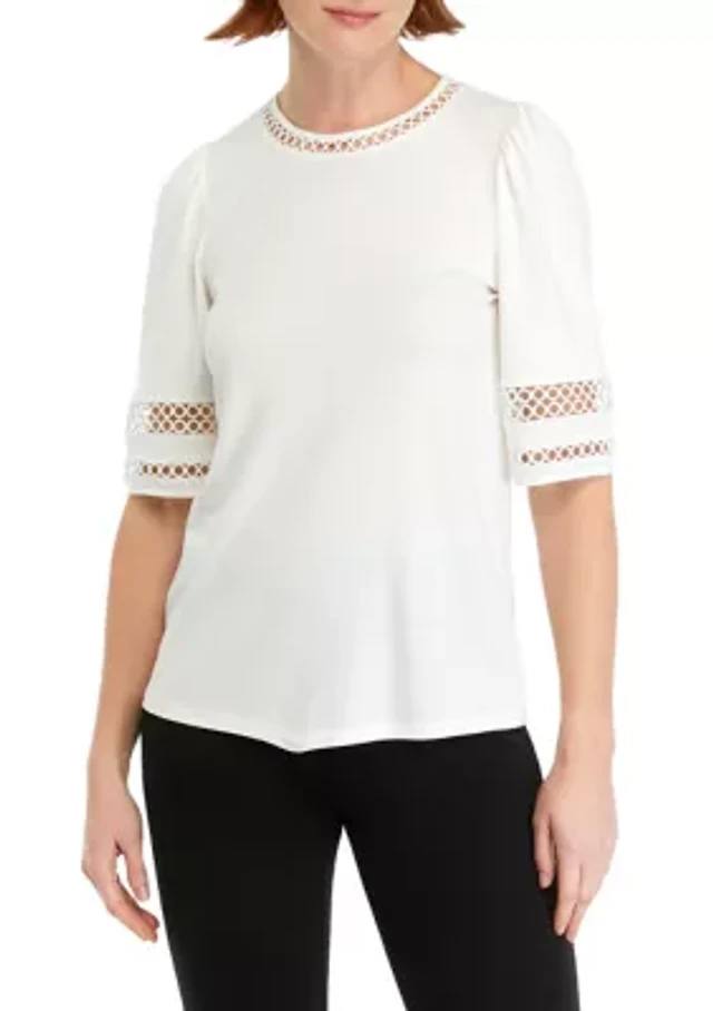 Ny Collection Plus Size 3/4 Sleeve Knit Gauze Top