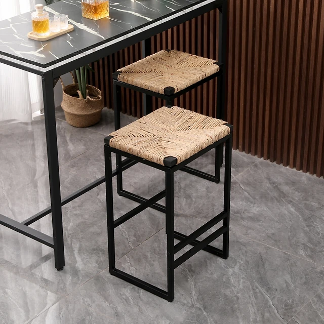 Streamdale Furniture 2 Water Hyacinth Woven Bar Stools With Footrest