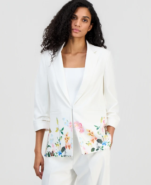 Vince Camuto Women's Ruched-Sleeve Ponte Blazer