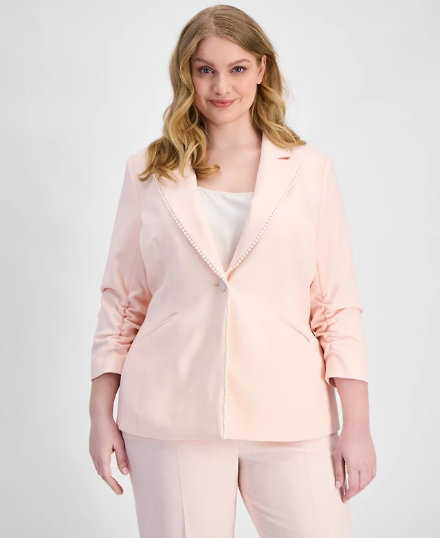 Tahari Asl Women's Faux-Pearl-Trim Ruched-Sleeve Blazer