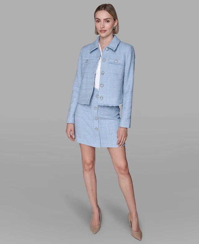 Karl Lagerfeld Paris Womens Five Button Cropped Tweed Jacket Tweed Mini Skirt