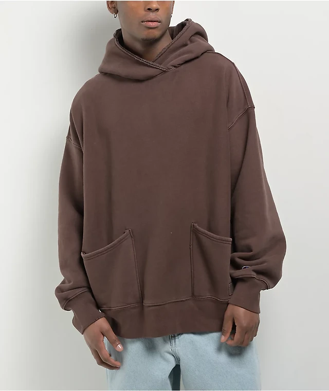 Champion Reverse Weave Crossover Warm Chocolate Brown Vintage Dye Hoodie