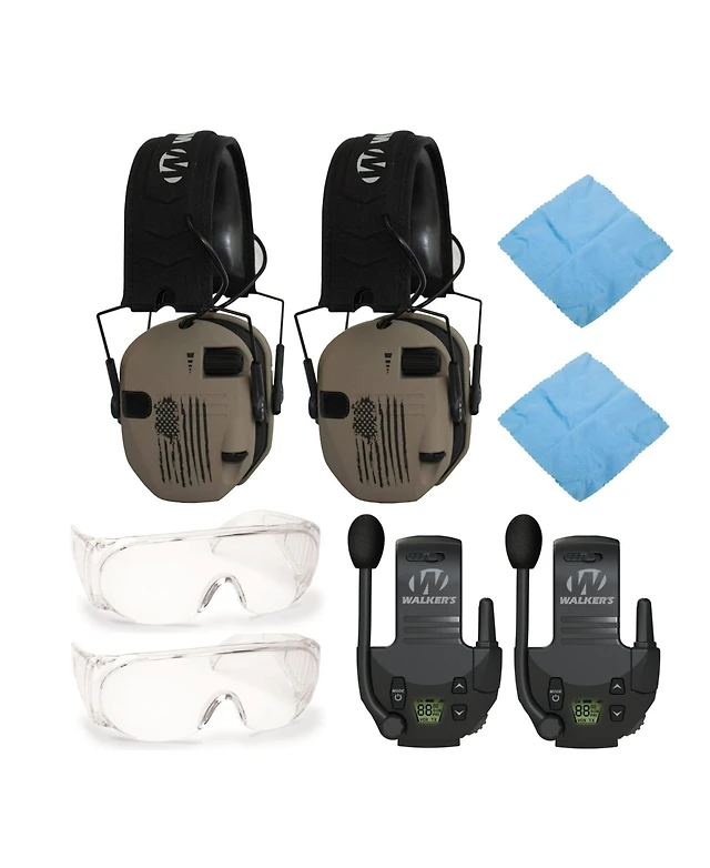 Walker's Razor Slim Electronic Muff (Us Flag-fde, 2Pack) Bundle with Accessories