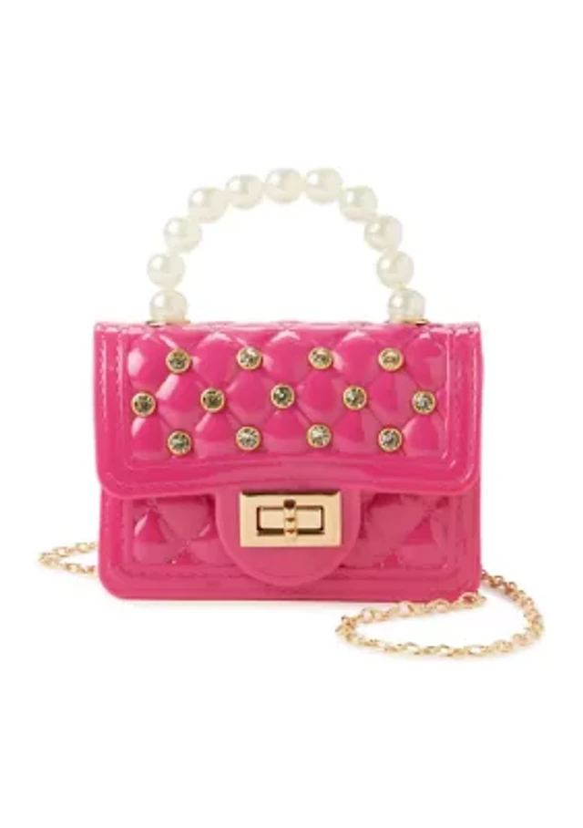 Quilted Small Jelly Bag with Pearl Handle and Stud Details