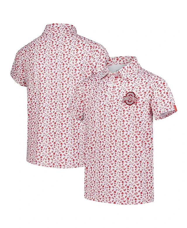 Garb Big Boys and Girls White/Scarlet Ohio State Buckeyes Tom Allover Print Performance Polo Shirt