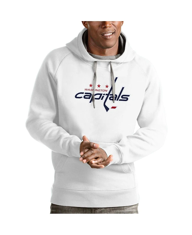 Men's Antigua Heathered Gray Washington Capitals Logo Victory Pullover Hoodie