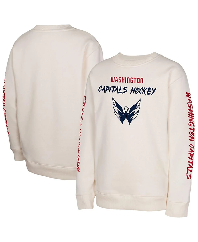 Men's Starter White Washington Capitals Defense Fleece Crewneck Pullover Sweatshirt