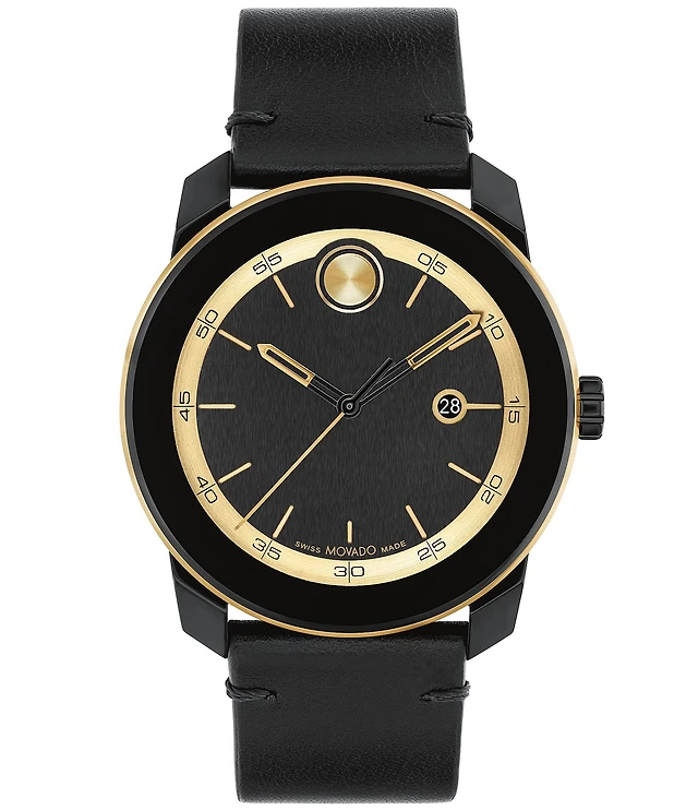 Peugeot Men 38mm Gold Retro Design Calf Skin Leather Strap watch