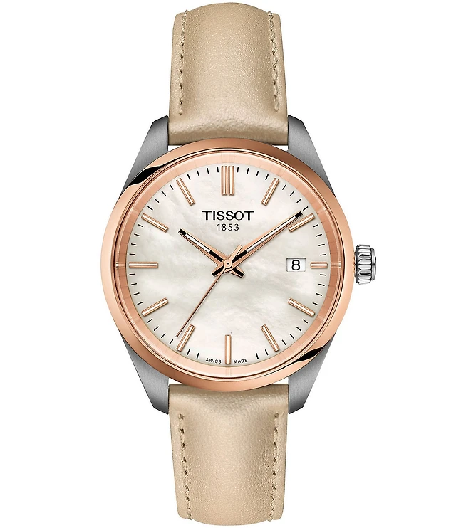 Tissot Unisex Tissot Pr 100 Quartz Mechanical Automatic Tan Leather Strap Mother-of-Pearl Watch
