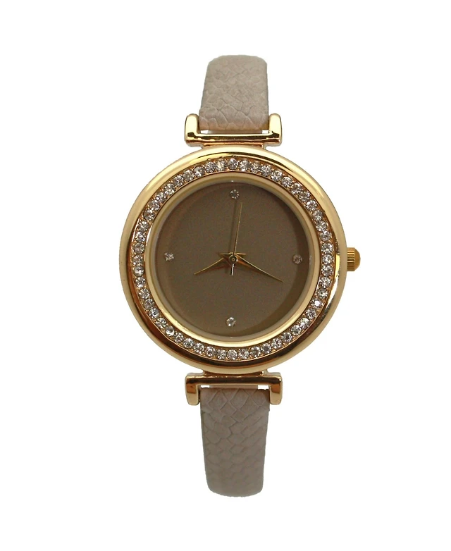 Bob Mackie Women's Pink Polyurethane Strap Stone Encrusted T-Bar Watch, 35mm