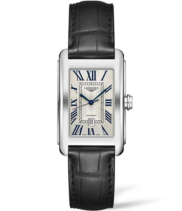 Longines Unisex Dolcevita Automatic Black Leather Strap Watch