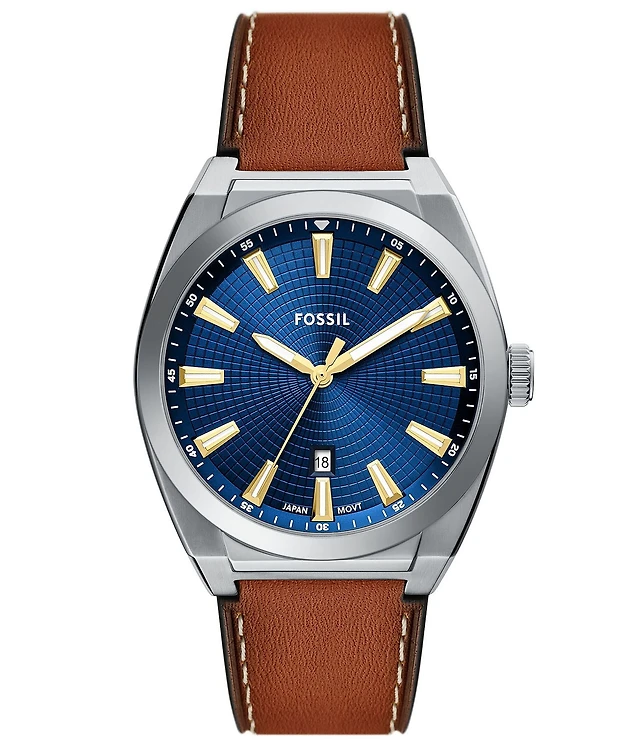 Fossil Men's Everett Chronograph Black Dial With Brown Leather Strap Watch