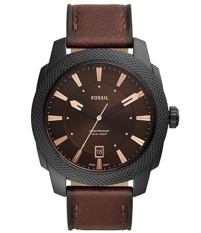 Fossil Men's Machine Big Tic Ana-Digi Brown Leather Strap Watch