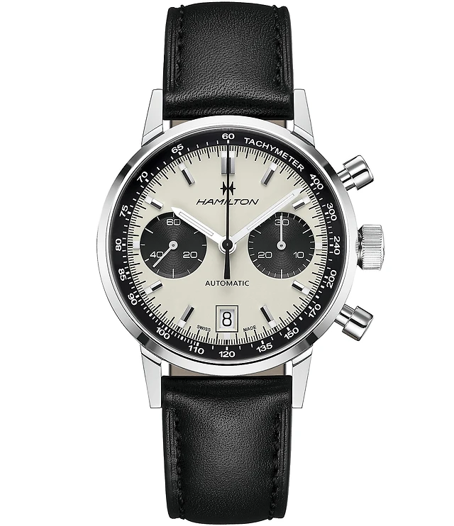 Hamilton Men's American Classic Intra-Matic Auto Chrono Black Leather Strap Watch
