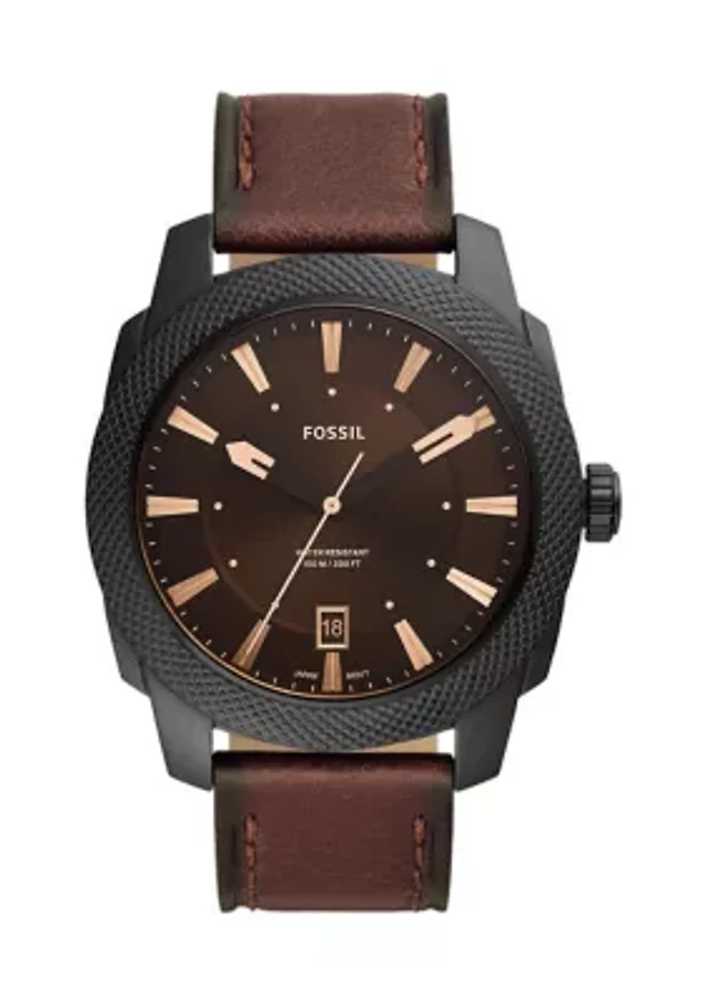 Machine Three-Hand Date Dark Brown LiteHide™ Leather Watch