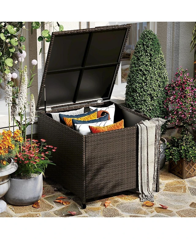 Gaomon 80 Gallon Waterproof Outdoor Rattan Storage Deck Box with Lid, Wheels & Handle for Cushions, Patio Furniture, Garden Tools