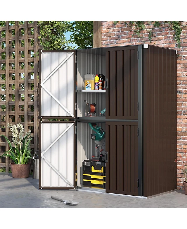 Slickblue Outdoor Wooden Storage Shed with Lock, Waterproof Garden Tool Organizer